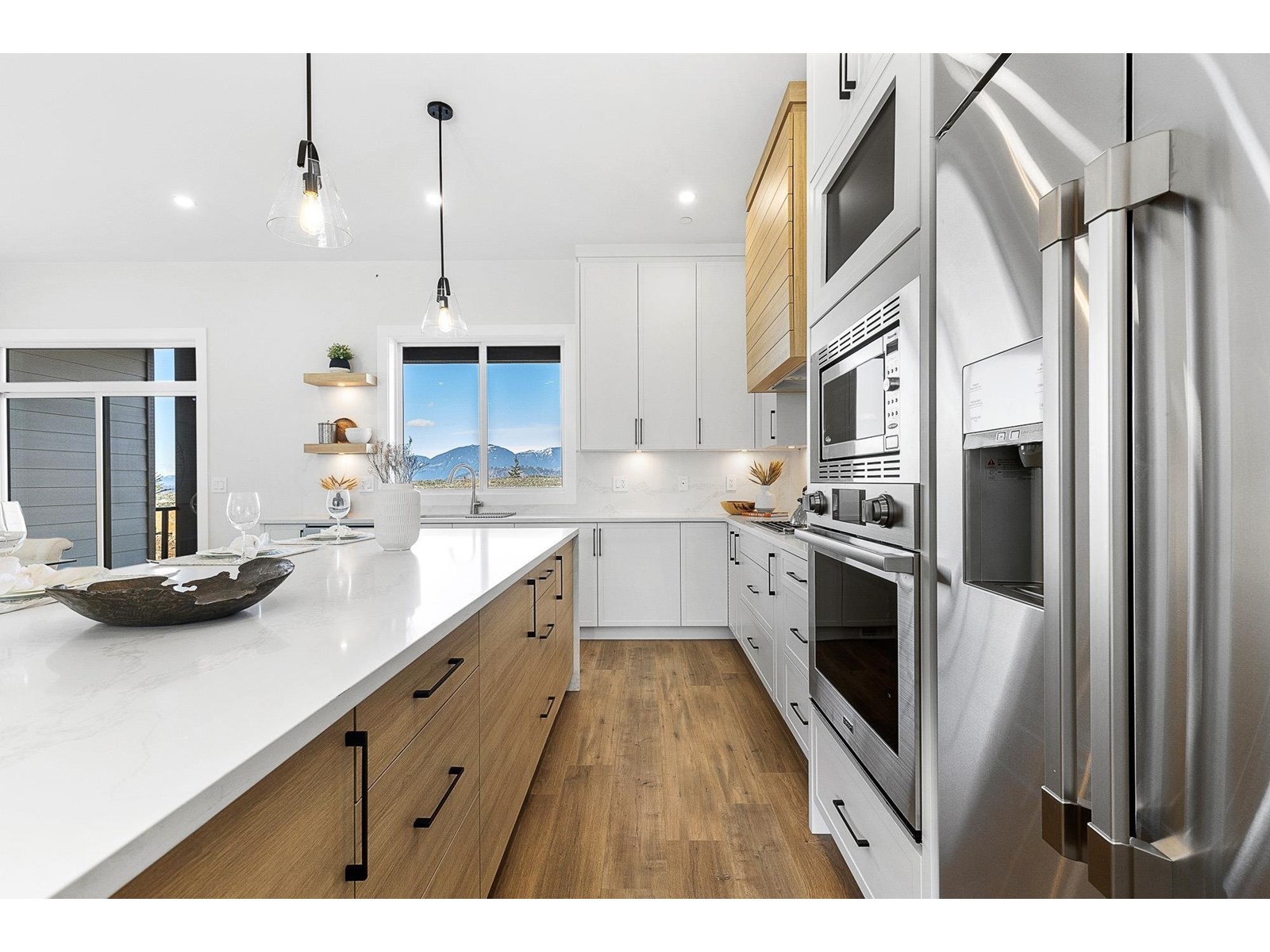 Breath taking mountain and cultas lake views! Welcome to your NEW HOME in the most desirable area this contemporary 7 bedroom 5 bathroom home is perfect for your large family & entertainment desired! Main floor with incredible kitchen- double waterfall quartz island, Dacor appliances, & ample custom cabinetry. Huge living room with gas fireplace, media room, bedroom/office and access to two covered patios- all on your main floor.! Step upstairs to 4 bedrooms including sexy primary suite with private patio w/ Cultus Lake Views & a spa ensuite w/ walk-in tiled shower, soaker tub, & dual quartz vanities. Fabulous family layout with laundry upstairs & 2 full bathrooms for the kids to share. Lower entry level with 2 bedroom suite as a great mortgage helper. Book your showings !! (id:9345)...