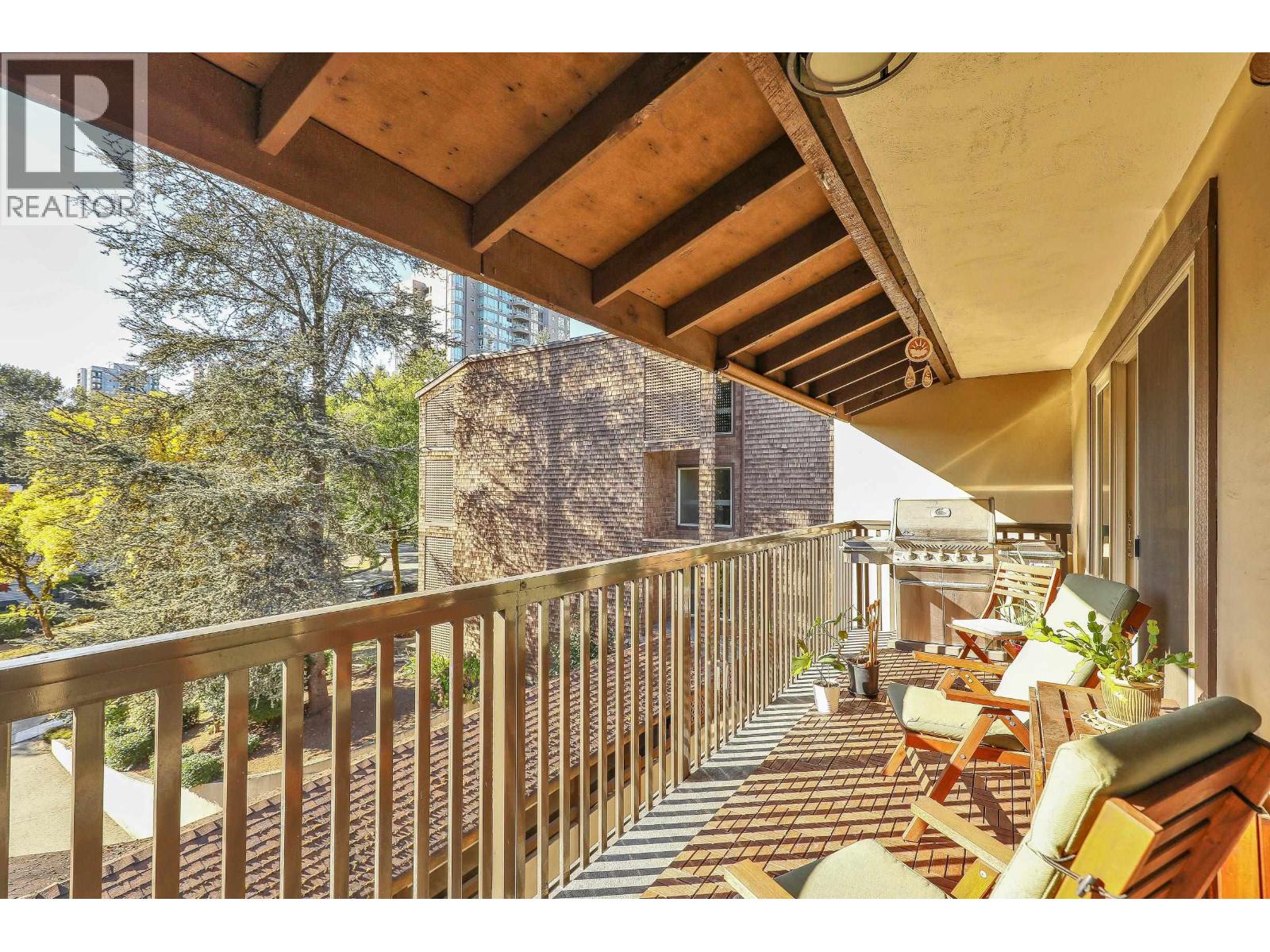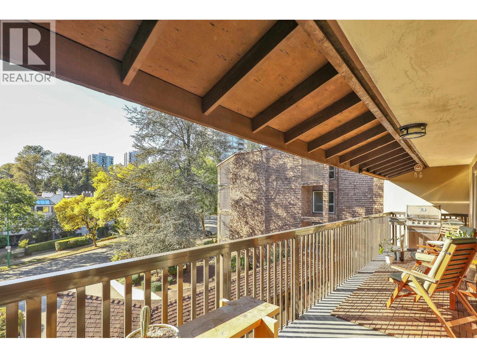 Move-in ready TOP floor 2 bed + flex/storage in highly sought-after Barclay Woods! Spacious 873 sq.ft. home with a massive 193 sq.ft. west-facing patio overlooking a quiet, treed cul-de-sac. Well-run, proactive strata with a full-time building manager and major updates already completed: windows (2013), plumbing (2014), common areas/lobbies/hallways (2015), balconies, sliding doors & elevators (in progress), and roofs (2018). Complex offers laundry on every floor, a fully equipped gym, and a renovated party room. Includes 1 secure underground parking stall. Pets and rentals allowed, making this an excellent choice for both homeowners and investors. Easy walking distance to SkyTrain, Lougheed Mall, schools, and local parks/trails. Truly a turnkey opportunity in a fantastic community! (id:9345)...