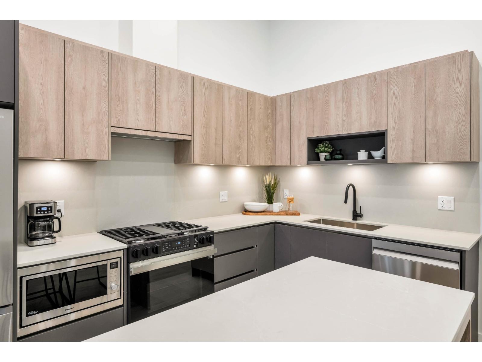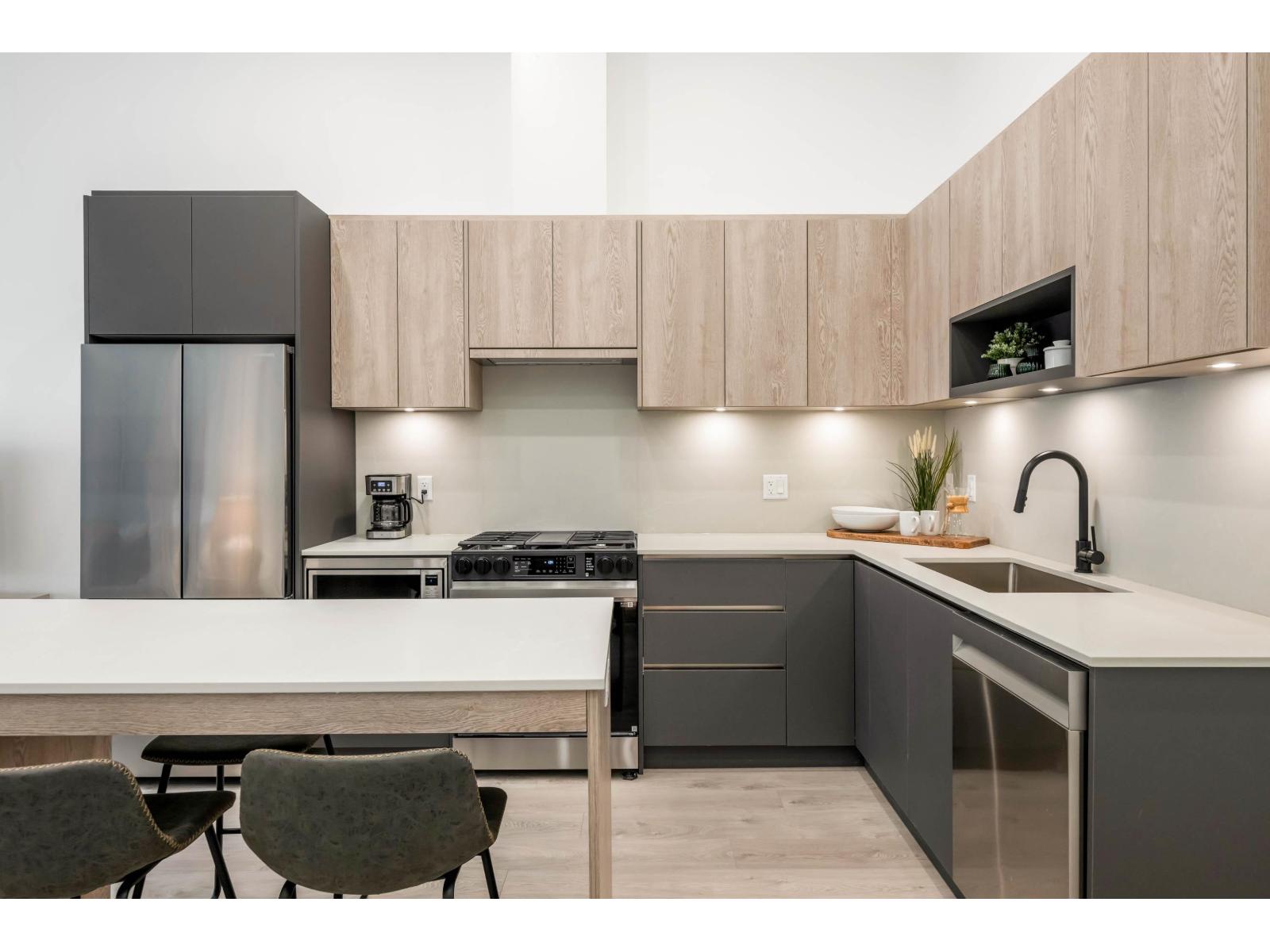 Harlo is in a prime location with parks, shopping & all amenities outside your door. This upscale GROUND level CORNER 1 bdrm, 1bthrm unit has its own separate entrance/access to the street! Boasting a modern design, high ceilings (12 ft main,14 ft. bdrm) beautifully finished & like new. Enjoy the open layout with a large outdoor patio & south facing so nice & bright! Kitchen features high-end S/S appliances incl gas stove, quartz, & an integrated pantry. There is in suite laundry, a spacious bdrm, and a lavish 4 pc bthrm. Elevated amenities including a rooftop terrace with stunning mountain views, children's play area, co-working space, gym, Peloton rm, lounge & more! 1 parking spot and 1 storage locker on same floor. Future Skytrain will make this a great investment & commuting a breeze! (id:9345)...