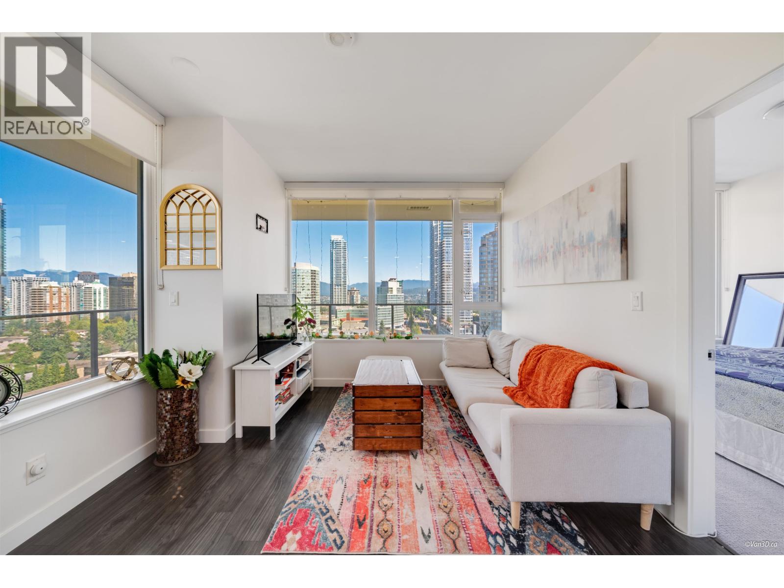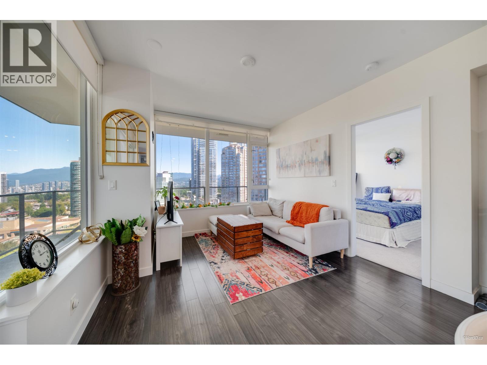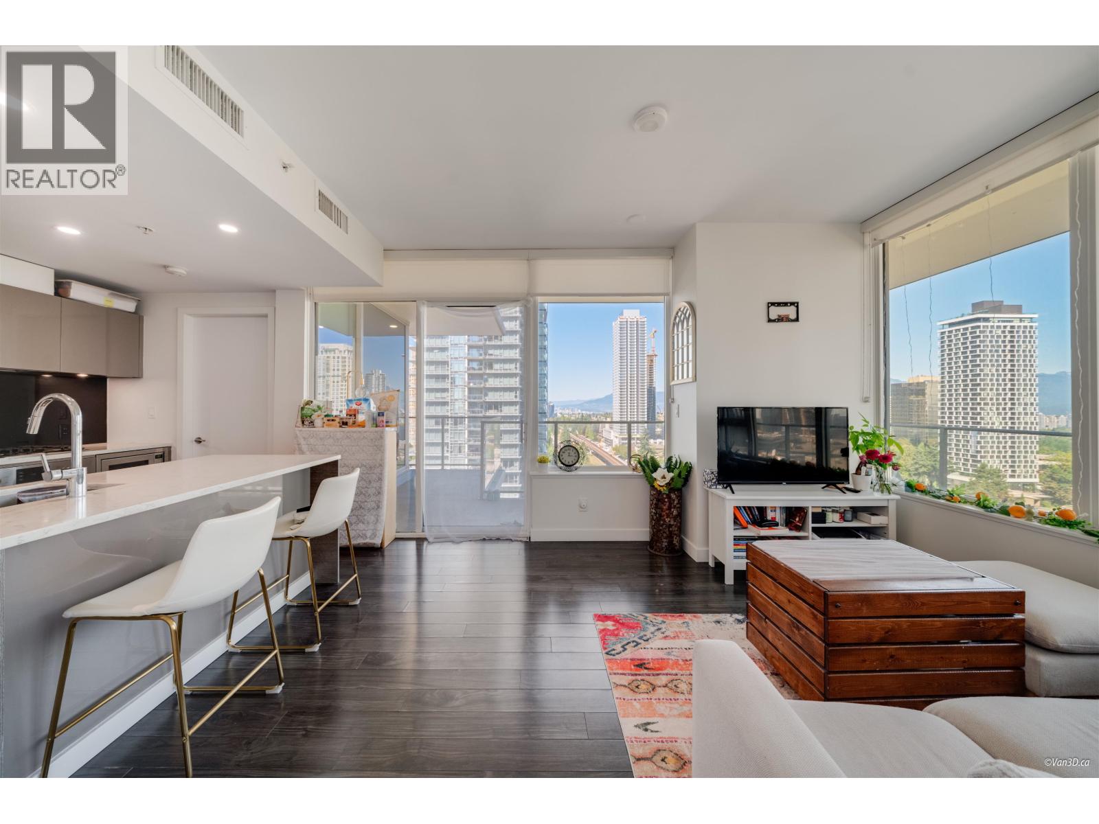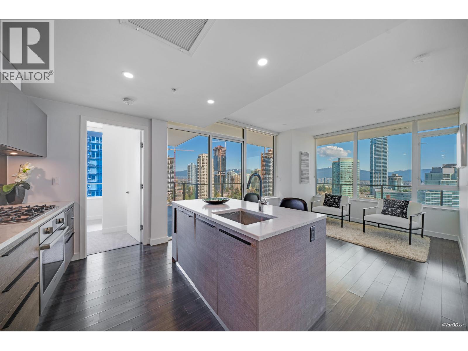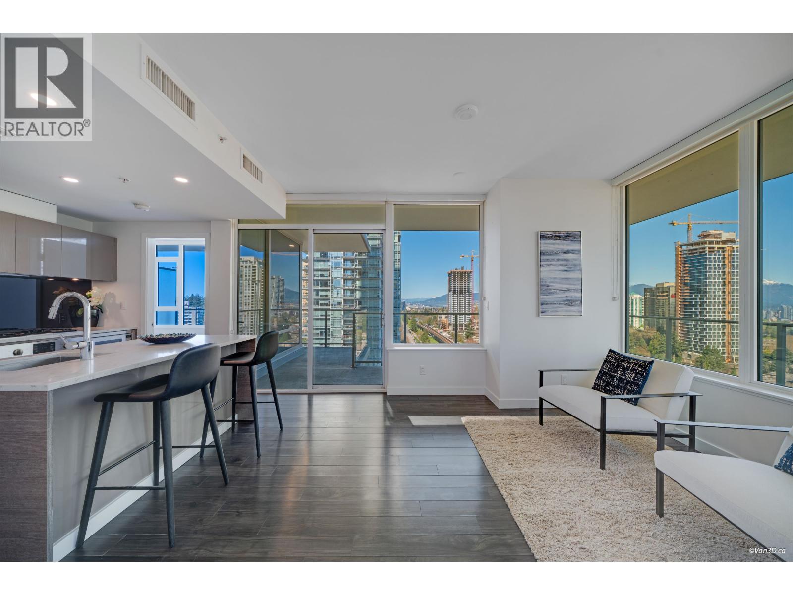 NW Corner Unit at prestigious GOLDHOUSE! Luxury and views define this 2 bed, 2 bath residence. Boasting a massive 345 sqft wrap-around balcony perfect for entertaining with panoramic views. Steps to Skytrain, Metrotown Mall, and Crystal Mall, plus a 10-minute stroll to Central Park & Bonsor Rec Centre. The interior features integrated Bosch appliances, 9' ceilings, and premium Italian cabinetry. Enjoy over 30,000 sqft of amenities, incl. fitness centre, spacious lounge with show kitchen, bar, warming kitchen, dining space, and outdoor BBQ terrace. Benefit from 24/7 concierge service, BONUS 2 side by side Parking Spaces, & storage unit.(For reference only, last 15 photos when unit was vacant) (id:9345)...
