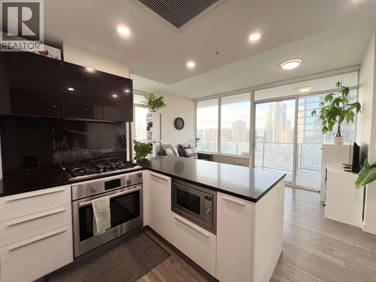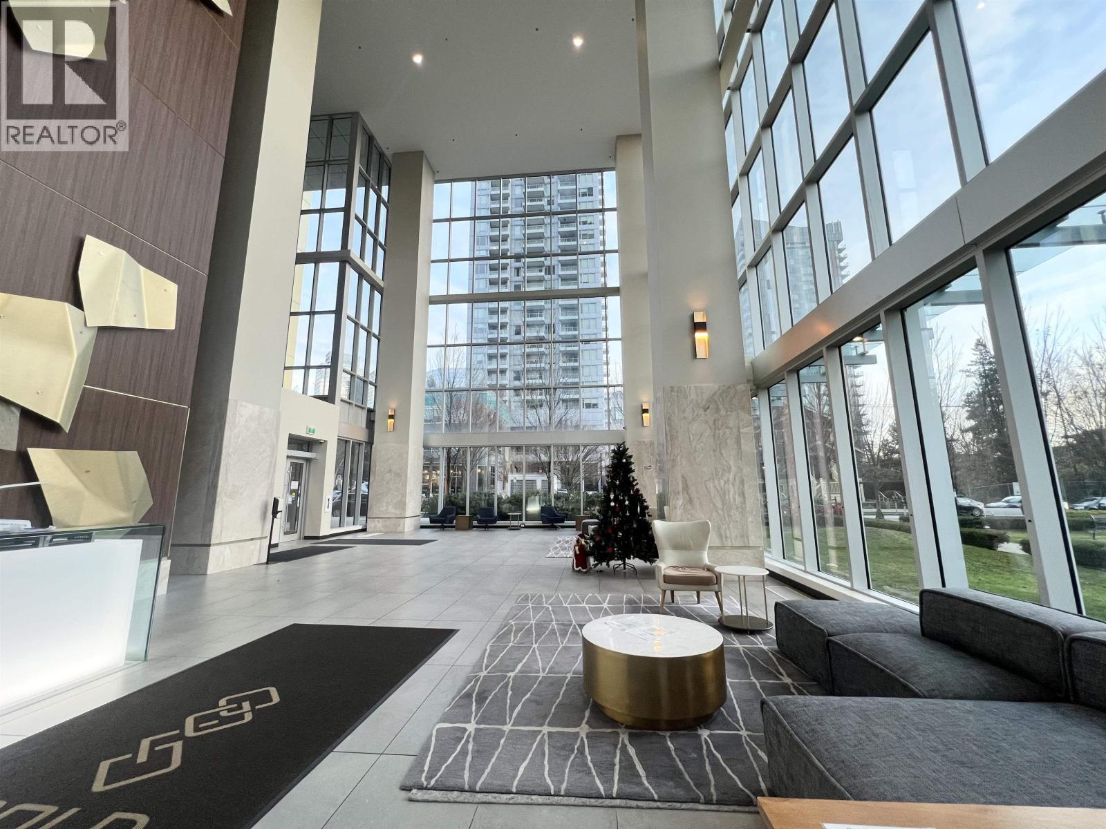 Metrotown - GOLD HOUSE. Beautiful 2-bedroom, 2-bath home with a 375 sq.ft. wraparound patio. Located in the heart of Metrotown, this bright corner suite features expansive windows, 9-foot ceilings, and panoramic mountain, water, and city views. Gourmet Bosch kitchen with custom cabinetry, plus central A/C and heating. Over 40,000 sq ft. of amenities: gym, lounge, study/music rooms, party room, and 24-hour concierge. Steps to Metrotown, SkyTrain, restaurants, Crystal Mall, Central Park, T&T, Superstore, and the library. 1 Parking P3 #125 and 1 Bike locker P3-P310 #139 are included. (id:9345)...