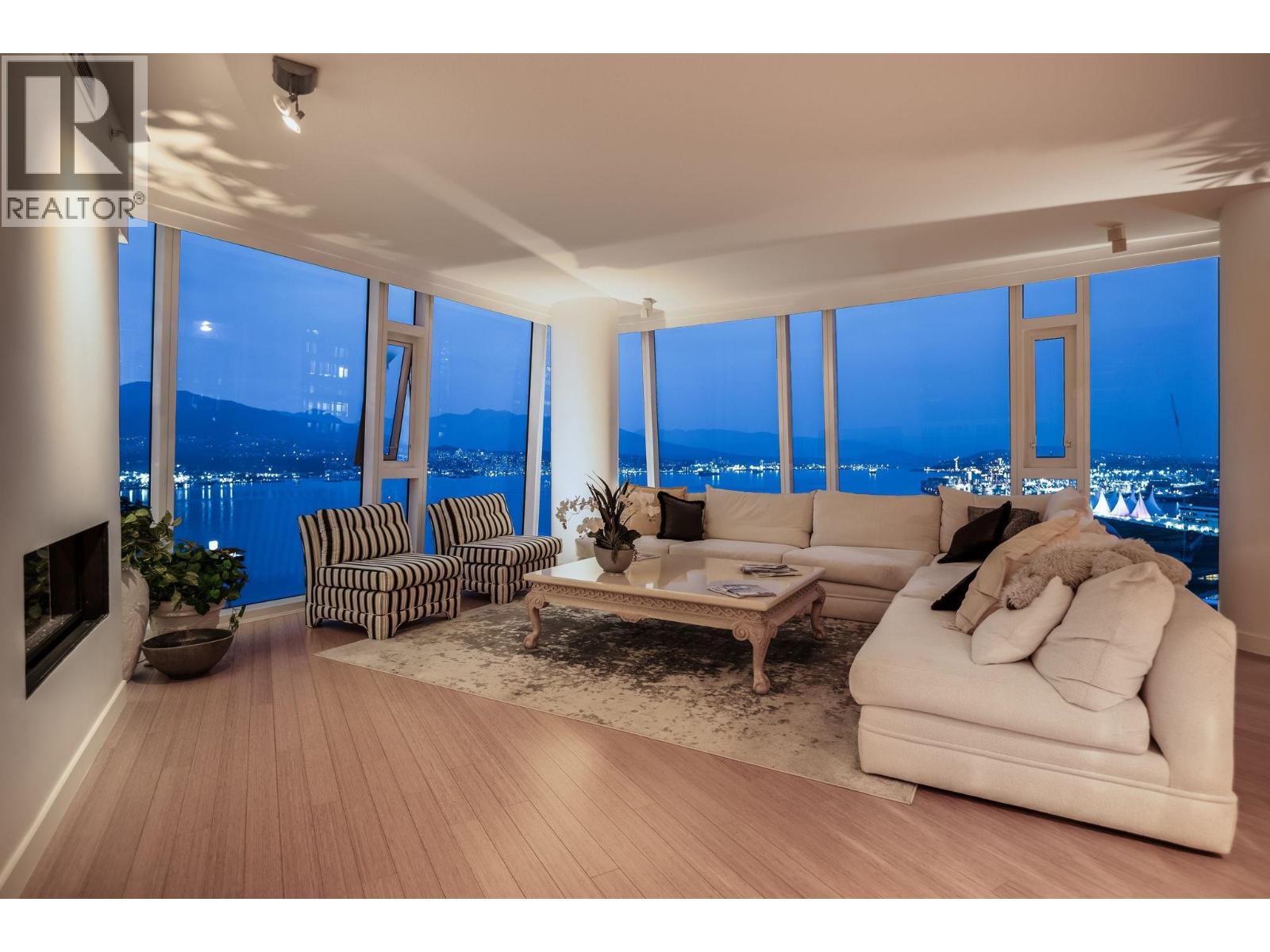 Gorgeous sub-penthouse at Carina in prestigious Coal Harbour, occupying the entire half floor with breathtaking views of the North Shore Mountains, Burrard Inlet, and Stanley Park. This 2,550 sq ft, 3-bedroom, 3-bath residence features floor-to-ceiling windows, expansive wrap-around terraces, central A/C, gas fireplace, gourmet kitchen with gas cooking, electric blinds, and patio awnings. Immaculately maintained by the original owner, the home is in pristine condition and offers 3 secure parking stalls and a storage locker. Carina provides resort-style amenities including an indoor pool, hot tub, sauna/steam, fitness centre, concierge, and meeting rooms, with generous visitor parking. Pets and rentals allowed with restrictions. (id:9345)...
